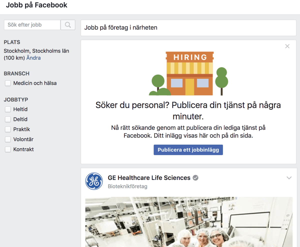 Det ska sägas att det har gått att publicera jobb och ha olika lösningar för att publicera sina jobb på Facebook tidigare men att det nu blir en produkt från Facebook gissar vi innebär att det kommer bli en produkt Facebook fokuserar på och lyfter fram för oss medlemmar, likt det gjort med Marketplace som är tänkt att utmana Blocket.