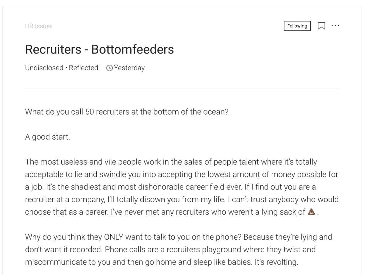 Vad innebär det här för HR? Jag har inte själv helt landat i det än, ska villigt erkännas. Allt tyder på att den här typen av app som Blind är kommer att bestå i styrka. En kritisk punkt för liknande tjänster har tidigare varit verifieringen men Blind har löst verifieringen på ett fiffigt sätt plus vävt in en social komponent i det hela som gör allt mycket mer levande och dynamiskt.